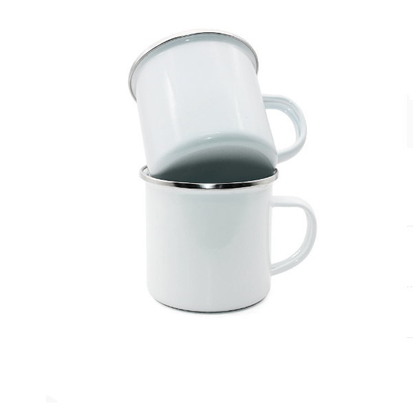 # The white sublimation enamel mug is 150 g per piece,not easy broken,it's very easy clean,very nice as the outdoor camping coffee metal mugs.