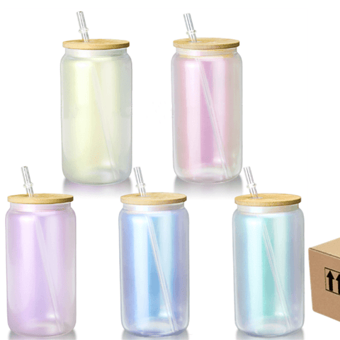 Case of 16oz Rainbow Glitter Sublimation Matte Beer Glass Can Tumbler
