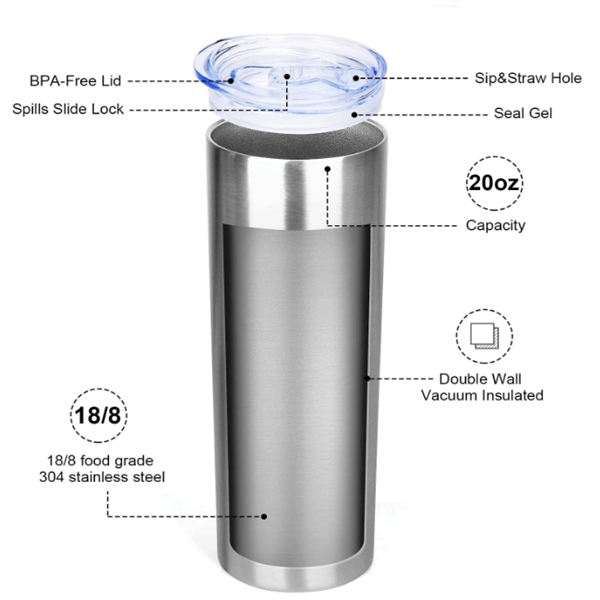 # Double Wall Insulated: Keeps drinks cold or hot for 6-12 hours, bring you much convenience.