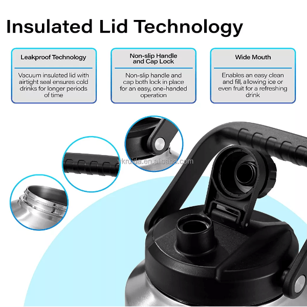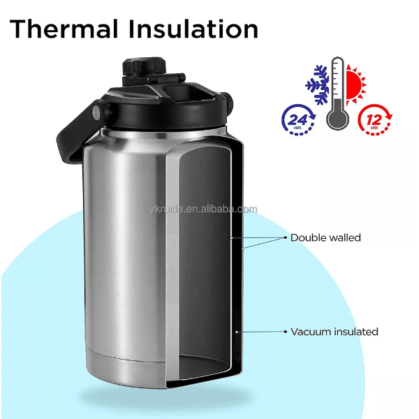 * Designed For Convenience: Great for hiking, camping, outdoor activities, or long road trips, stainless steel insulated water jug is easy to carry thanks to its comfortable handle and its body's non-slip exterior. Enjoy your drinks anywhere at any time of day !